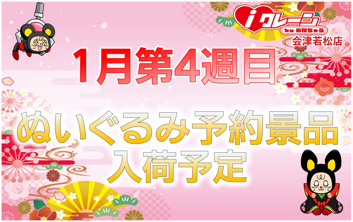 1月第5週目のiクレーン会津若松店🥷🐭 ぬいぐるみ景品、…